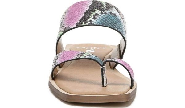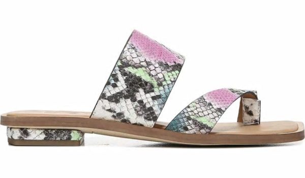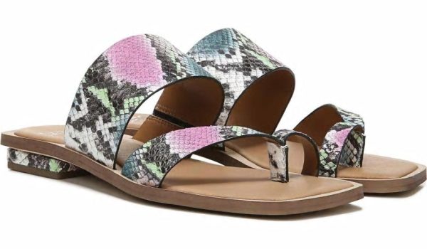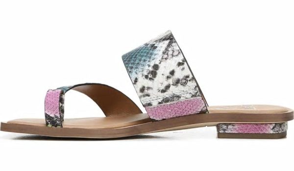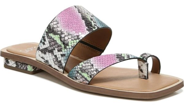 A slide sandal crafted with eco-conscious materials features a chic toe loop for a stunning update.
