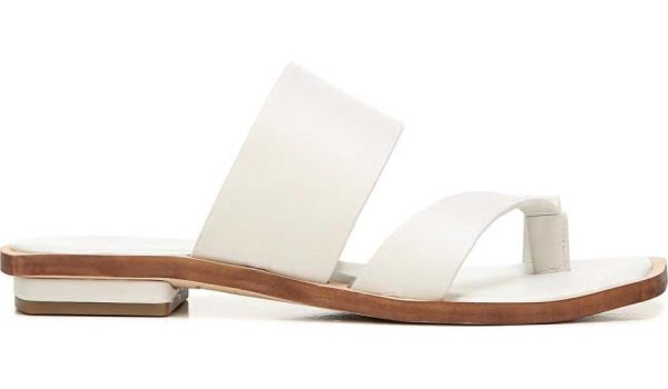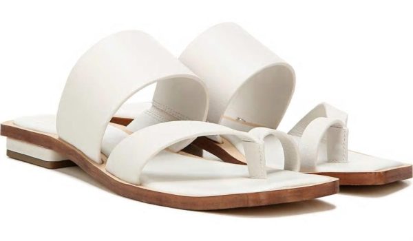 A slide sandal crafted with eco-conscious materials features a chic toe loop for a stunning update.