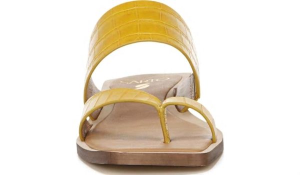 A slide sandal crafted with eco-conscious materials features a chic toe loop for a stunning update.