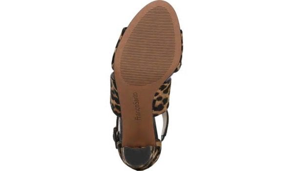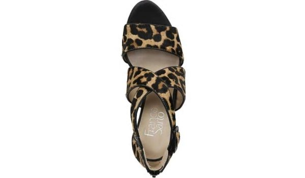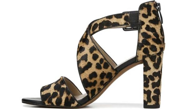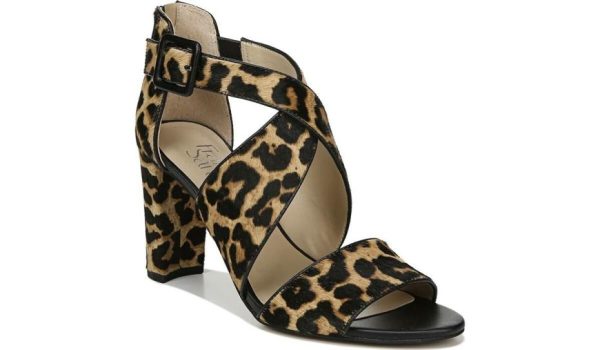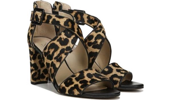 Crisscross straps accentuate the look of this must-have dressy sandal. Fabric, faux leather or pony hair upper. Adjustable buckle closure. Open round toe. Smooth lining. 3 inch wrapped block heel. Rubber outsole.