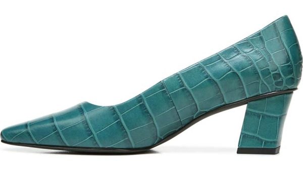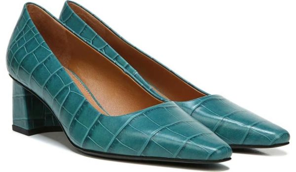 A classic pump is reinvented with clean lines and a soft square toe.