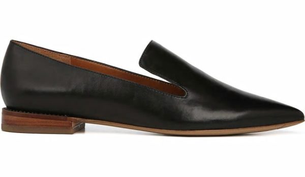 A pointed toe refines the appearance of a slipper-inspired flat.