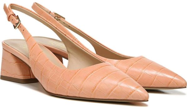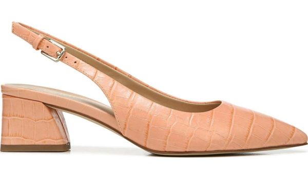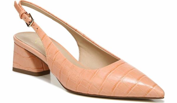 Set on a sturdy block heel, a pointy toe slingback pump exudes feminine allure.