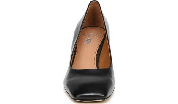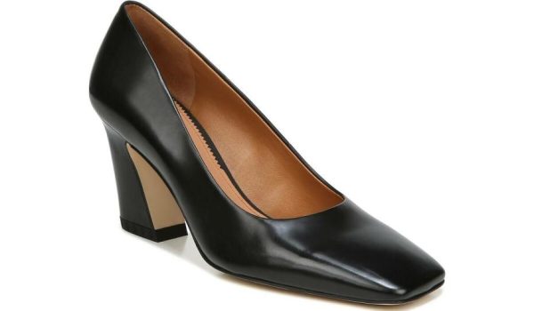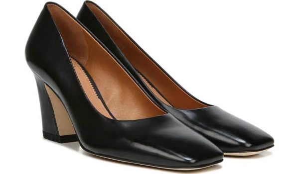 Exude style and confidence in this modern square-toe pump with artistic inspiration.