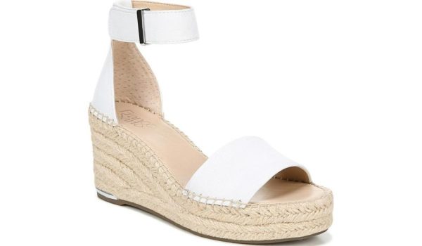 This essential wedge sandal features feminine style with silver-toned hardware and a chic ankle strap.