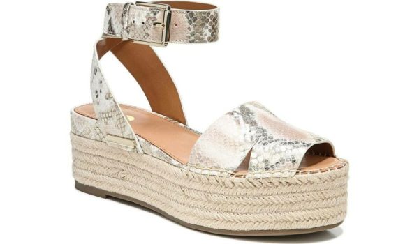 A chunky espadrille sandal features a sleek crisscross ankle strap for endless styling options.