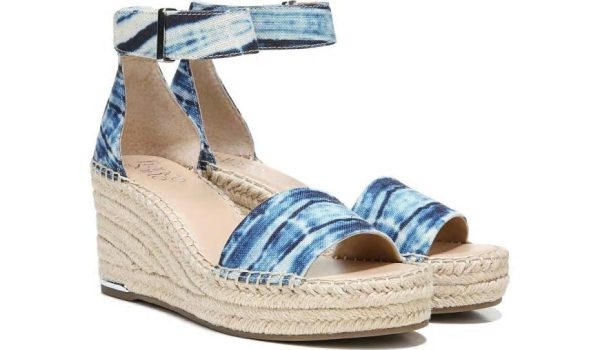 This essential wedge sandal features feminine style with silver-toned hardware and a chic ankle strap.